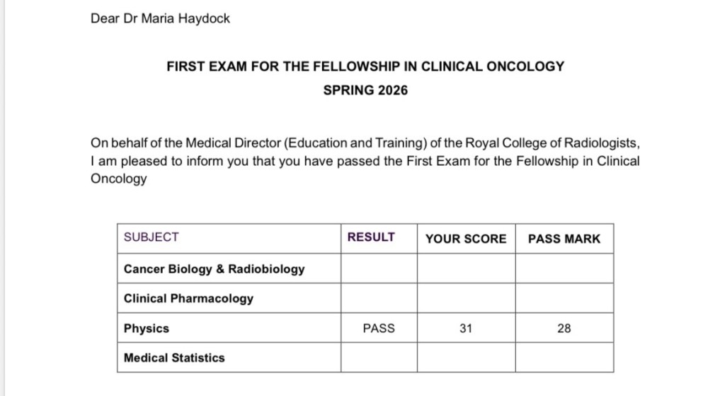 I paid zero attention to the lecture (Multi-disciplinary support for patients with HNC). I texted everyone I know to let them know – like me, they were eagerly waiting my results. I’m pleased that I did not disappoint them. Now with a new lease in life with a dash of invincibility, as if by instinct, I went straight to the FRCR Part 2A scheduling, and booked myself into the August 2026 exam in Wales. I really know how to celebrate, huh? And tomorrow is my Annual Review of Competence Progression (ARCP)… who knows, maybe they will decide I can now be an ST5.