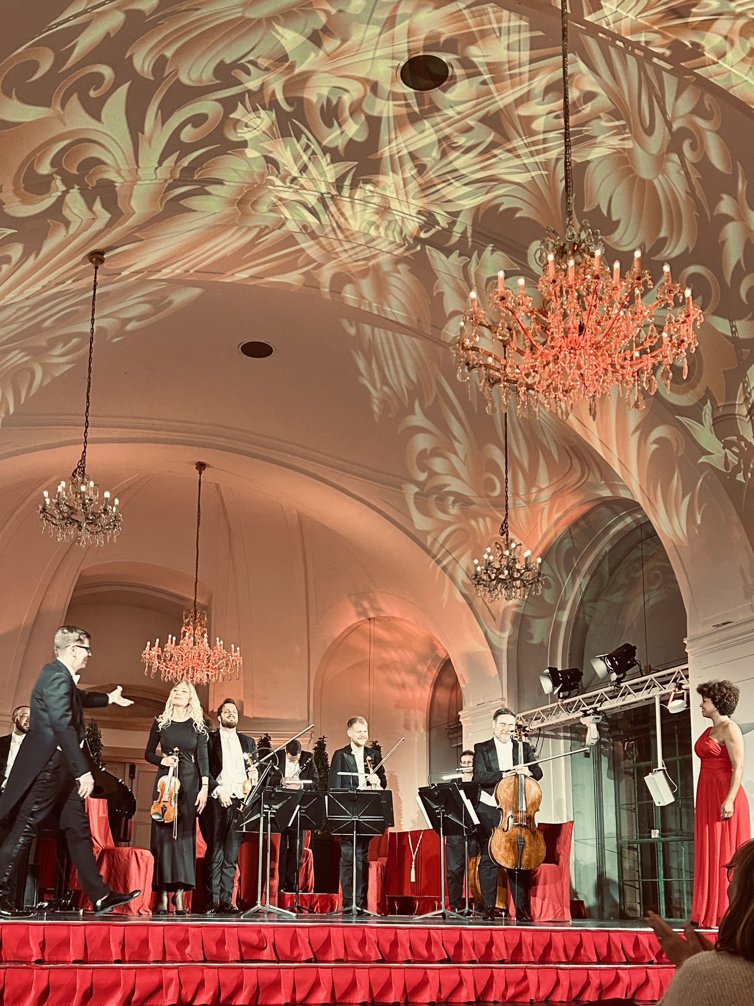 Both shows also required a bit of military precision as I was arriving at 1745 and had to get to the Schoenbrunn for 2000. Luckily, the pilot sped it up a bit and got us to Vienna at 1735. And thanks to marathon training, I caught the hourly bus that drops us off in front of the hotel. Then got changed in 5 mins time (smart casual), and trekked to the west of the city and got to Schoenbrunn right before 2000. I order a glass of white wine, sat down, and smiled with joy throughout the whole show. There was a mix of Mozart and Strauss, some familiar and some not. There was a soprano and a baritone singer and it was just so beautiful.