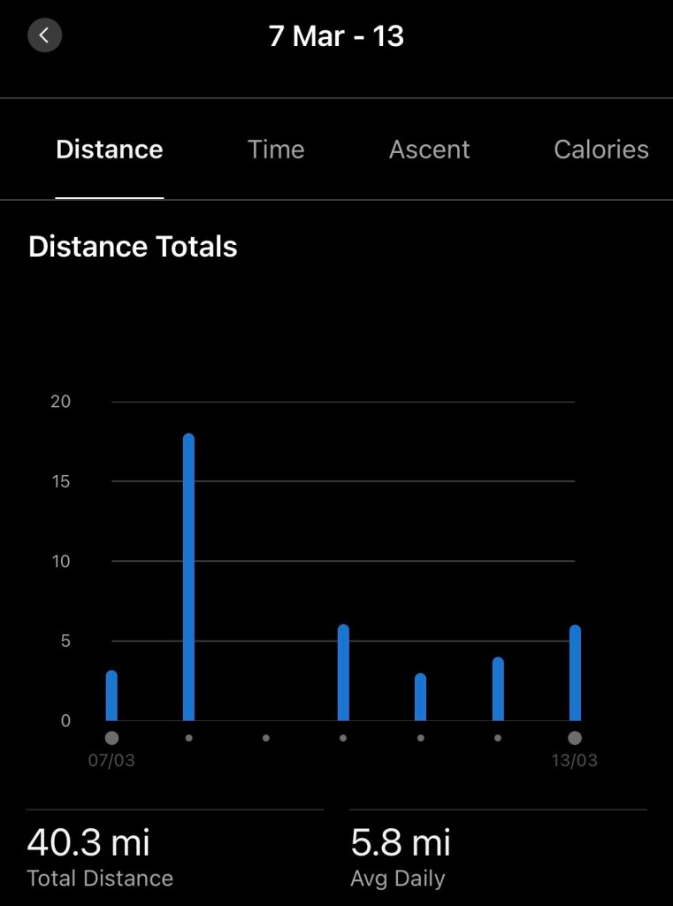 Also… I cannot believe that this has happened this week (or in my life) but I actually had a 40-mile week! However, I am mildly worried as there is a niggle around my patella – which could be tendonitis or ligamentitis. I need to keep an eye on this.