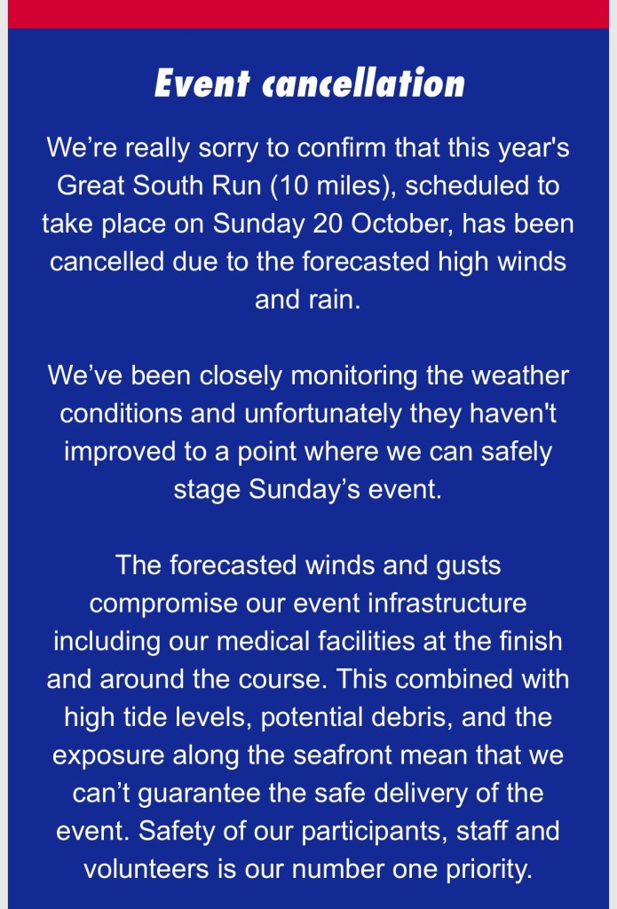 The Rollover or Refund email for The Great South Run 2025 has now come through (Rollover for myself and David). They also included that we can claim and shirt and a medal for this year’s efforts (yes, please).