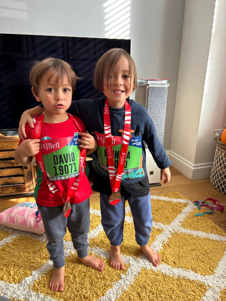 Whilst David’s legs felt like jelly, I felt like I was just warming up. But after a quick bite and some coffee, we had to get home to these two, who eagerly awaited their medals…