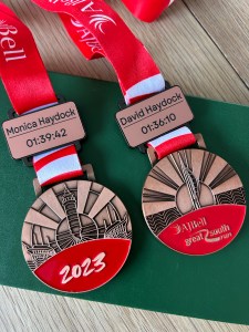 David is as consistent as ever. With no training, 1:36:10 the first year, 1:36:08 this year! Last year, he finished beyond 2 hours – assisted someone on the course who fell and had a head injury (the anaesthetist/A+E doc in him took over).