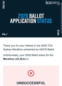 Not getting a place at the Sydney Marathon 2026 is very much okay as I will just have to run it in 2027 – ballot or charity place.