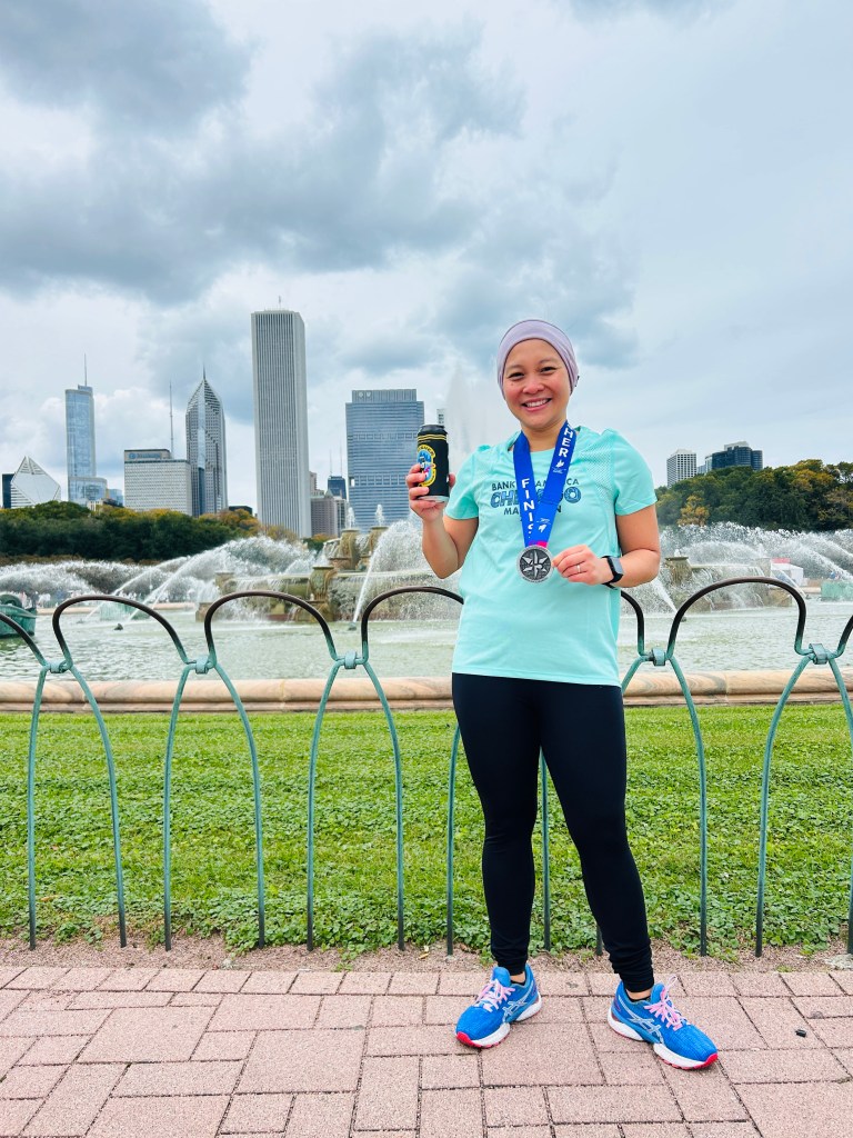At this race, I also met a few people and heard their stories of why they came to run. I had chats with Robin from Canada who’s getting closer to achieving his 6th star and bought me a train ticket on the way to Grant Park, Audrey from South Dakota – she has 4 kids and is running for the first time, Chris from Australia who travels far to run races and now just needs to get back to drink Melbourne coffee, Kelcey from London who asked me what my next plan is and said it’s easier to just keep going than to start stop (I might just end up signing up to the Portsmouth Coastal Marathon again).