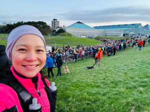 The start line is 2 miles from my house but this time, I drove there (shamefully). The last time (2021), the walk home was worse than the run itself as it was winter cold on top of the post-race shivers. When I got there, it felt a bit more organised than what I remembered it to be. I got there at 730 for an 8 am start. After all the pre-race prep, it was to the Start Line, then we were off! There was a group of runners were singing All I Want for Christmas…