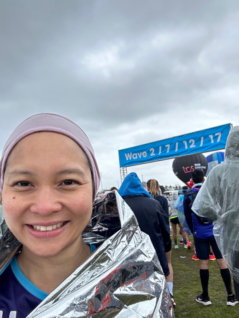 The day started with the weather forecast saying at least 60% of rain throughout the course of the race. And sure enough, it started drizzling when I got to Blackheath. I remembered to bring my foil blanket just in case. But for next time, a poncho would be good. There was some waiting but it wasn’t too bad, you get chatting with everyone next to you. And then it was Go time and off we went.