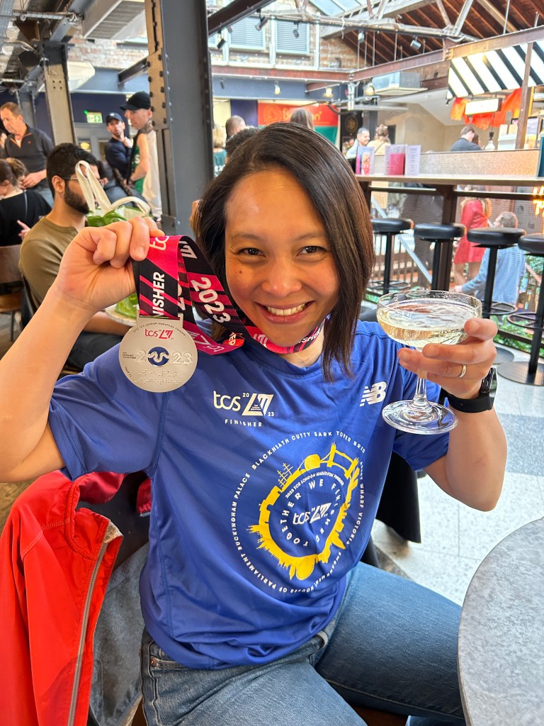 The London Marathon is also a beginning of an era. I have started working in the medical specialty that I have chosen. I officially also now have 1 out of the 6 stars I am trying to reach. And I am actually so happy that I achieved this star on home soil. To top it off, when I rang home, the kids said “Mummy, we saw you on TV, you were running!” They saw me cross the finish line.